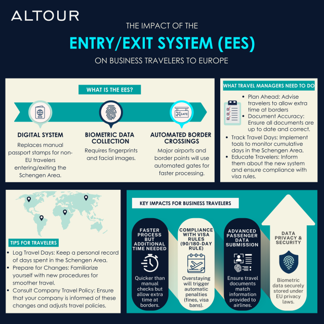 Starting on 10th November 2024, a new Entry/Exit System (EES) will be rolled out across the Schengen Area. If you’re travelling to Europe for business, this new system will change how you enter and exit the region. The EES is designed to improve security and make things more efficient by replacing passport stamps with a digital, biometric-based process.